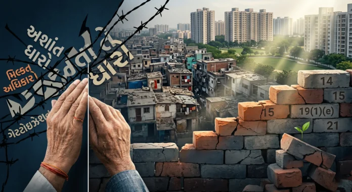 ભારતના બંધારણે દરેક નાગરિકને સમાન અધિકારો, સ્વતંત્રતા અને માનવ ગૌરવ સાથે જીવવાનો અધિકાર (Right to live with dignity) આપ્યો છે. ખાસ કરીને આર્ટિકલ 14,15, આર્ટિકલ 19(1)(e) (ક્યાંય પણ વસવાટ કરવાનો અધિકાર) અને કલમ 21 (જીવન અને સ્વતંત્રતા) હેઠળ આ અધિકારો સુરક્ષિત છે. પરંતુ અશાંત ધારાના વર્તમાન અમલથી મુસ્લિમ રહીશો આ બંધારણીય અધિકારોથી વંચિત થઈ રહ્યા છે.